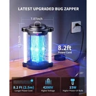 Equipped with 15W UV light bulb and 4200V high-voltage grid, The 15W UV light can attract mosquitoes from over 2100 square feet away, and the 4200V high-voltage grid effectively eliminates mosquitoes, leaving them with nowhere to escape