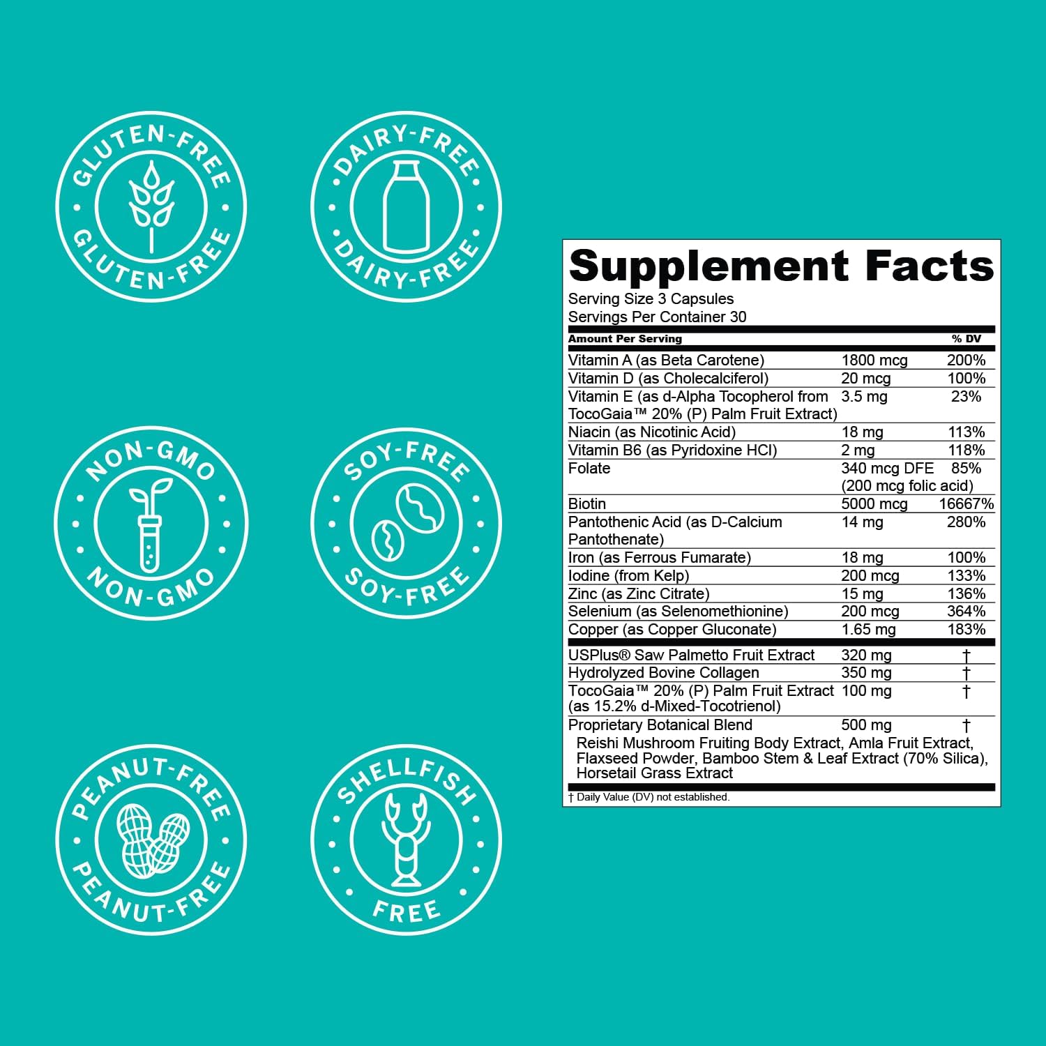 • INGREDIENTS SUPPORT OVERALL HEALTH – Nutrients like zinc, vitamins A & D3, selenium, iron, and reishi mushroom, were each chosen for their benefit to help keep you healthy on the inside, creating the ideal canvas to promote healthy hair from within.*