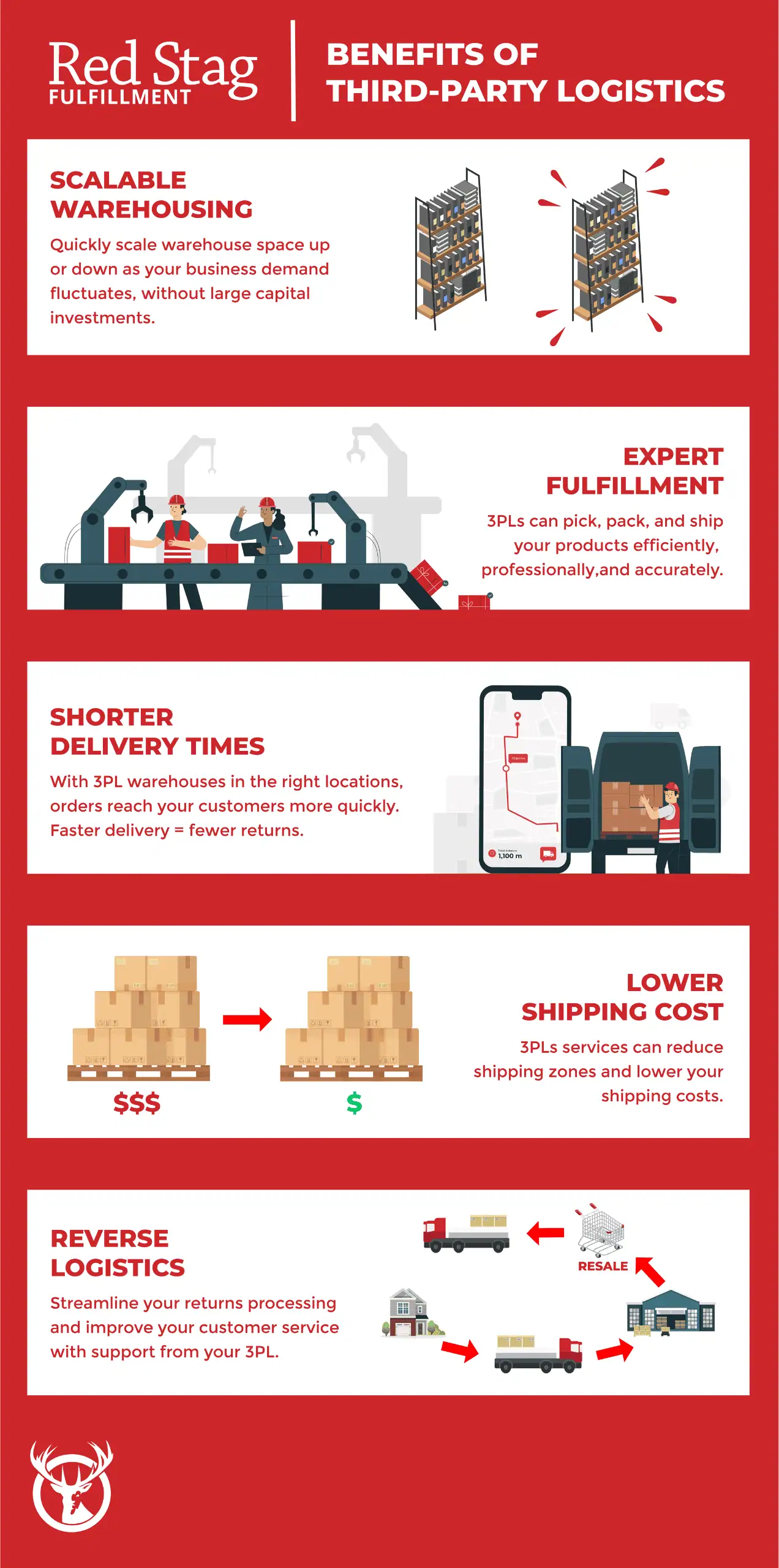 You gain an expert partner. Your third-party logistics provider can help you choose the best packaging, shipping, inventory management, and reverse logistics options for your company, acting as a true partner in your supply chain management.